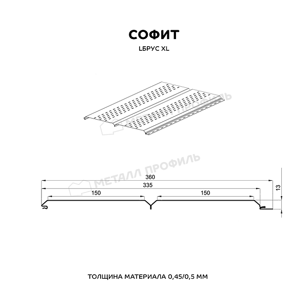 Софит МЕТАЛЛ ПРОФИЛЬ перфор. Lбрус-XL-14х335 (ПЭ-01-RR32-0.45)